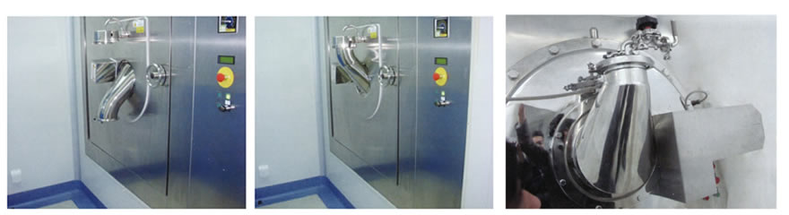 本產品對膠塞、鋁蓋處理工藝主要采用先進的真空吸料、蒸汽滅菌、真空幹燥等工序。膠塞、鋁蓋(gài)從自動吸料、強力噴淋、慢速翻滾、超聲波 等多項技術(shù)作用下洗滌、矽化、蒸汽滅菌、真空幹燥、熱風再熱抽真空(kōng)幹燥,至自動出料,全在一機(jī)內PLC程控(kòng)器控製下全自動操作完成, 無中間(jiān)轉序,不產生交叉(chā)汙染(rǎn),同(tóng)時本機對各工序的運作(zuò)狀態,能在顯示屏上動態顯示,直觀了解機(jī)組運行情況和自動記錄各項運動參數。