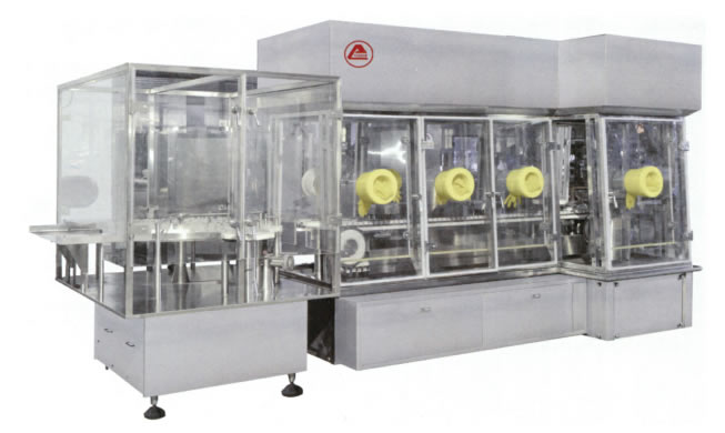 本機在手套式隔離器內(nèi)工作,具有在線清洗、在線滅菌、在線自動稱量,且配有加塞無菌對接口、塵埃粒子檢測口。